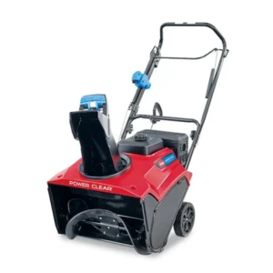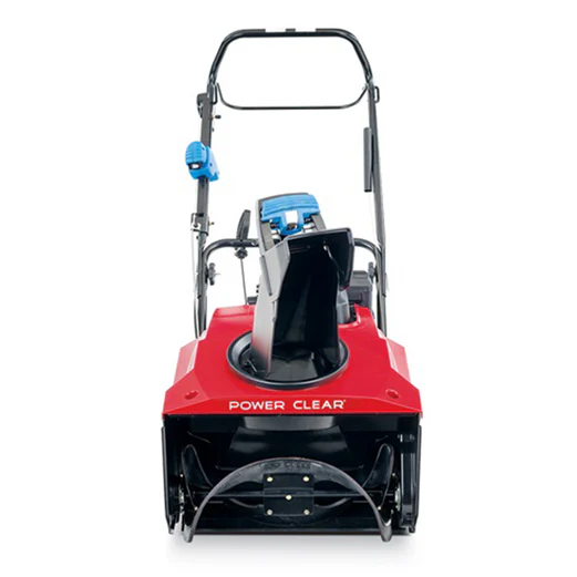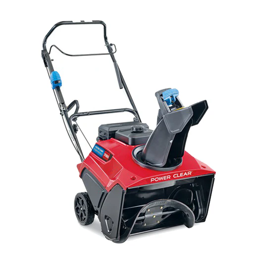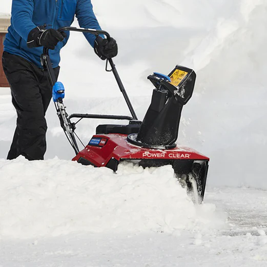 Take on Ol’ Man Winter’s biggest punches with the Toro Power Clear® 821 QZE Single Stage 21 in. Gas Snow Blower. This machine is built to blast through the deep snow, with a 252cc 4-cycle OHV engine that launches the white stuff up to 40 feet. Putting snow where you want it is a snap with the quick trigger and fast-action quick shoot. Starts easily with electric start. Shred snow fast with the patented Power Curve® system, while the self propel Power Propel system gets you moving on quickly. You’ll have more room for storage with the blower’s compact design. With Toro’s 2-year Guaranteed-to-Start promise and 2-year limited warranty, you’re ready for whatever winter has in store. Count on it. Fold-down handle and chute make storage or transport simple. Storage dimensions: 33″ x 21″ x 34″ (84 cm x 54 cm x 87 cm).